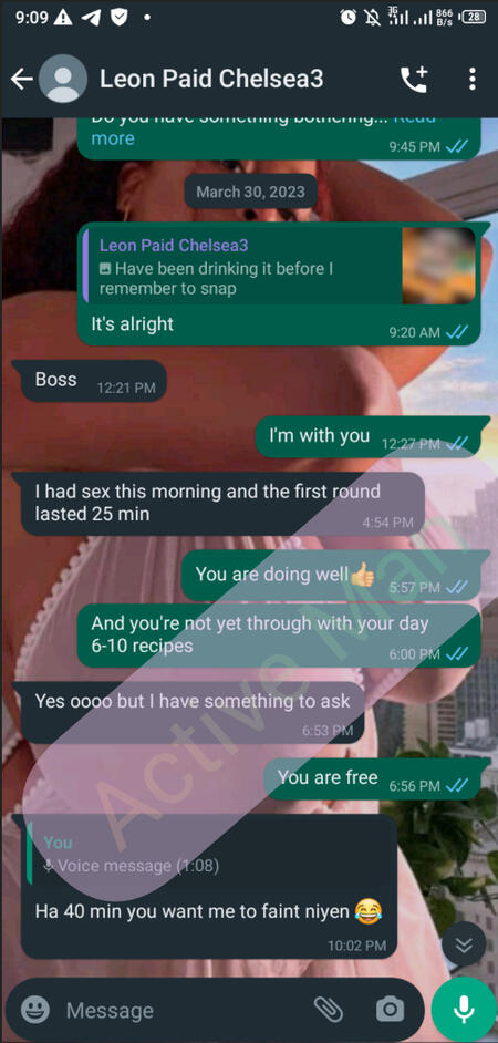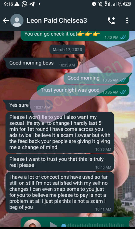 This new discovery helps anyone to leave the 2-mins men zone to the sex beast zone even if they've been trying unsuccessfully to get rid of cumming quickly for years.Before we continue, let me show you the chat Leon had with me on March 17th, 2023 after reading this write-up as you're here reading it now.